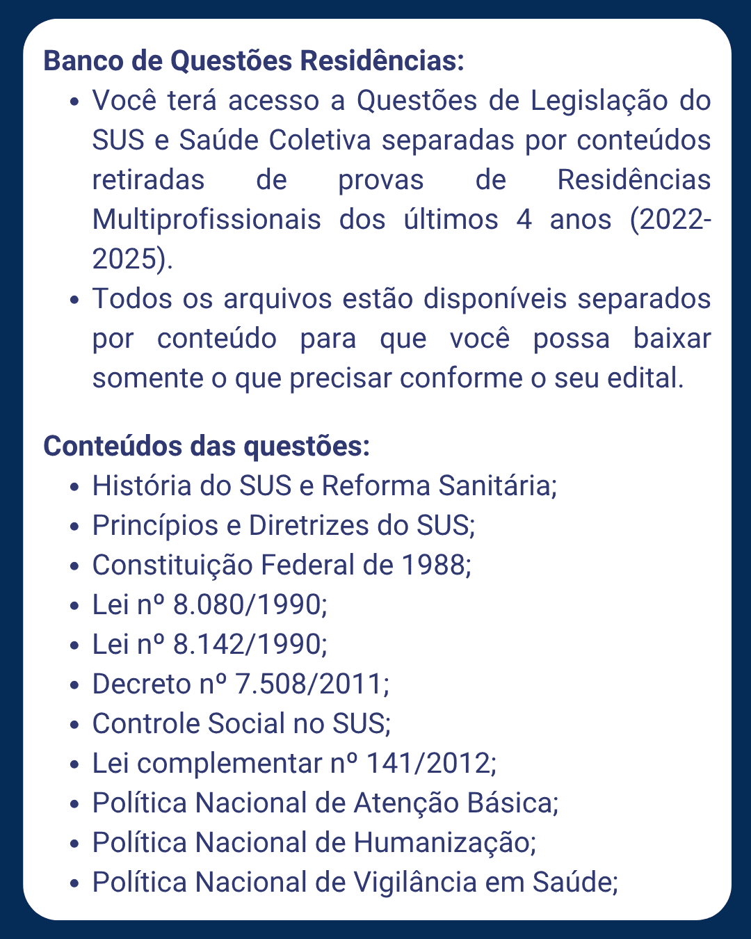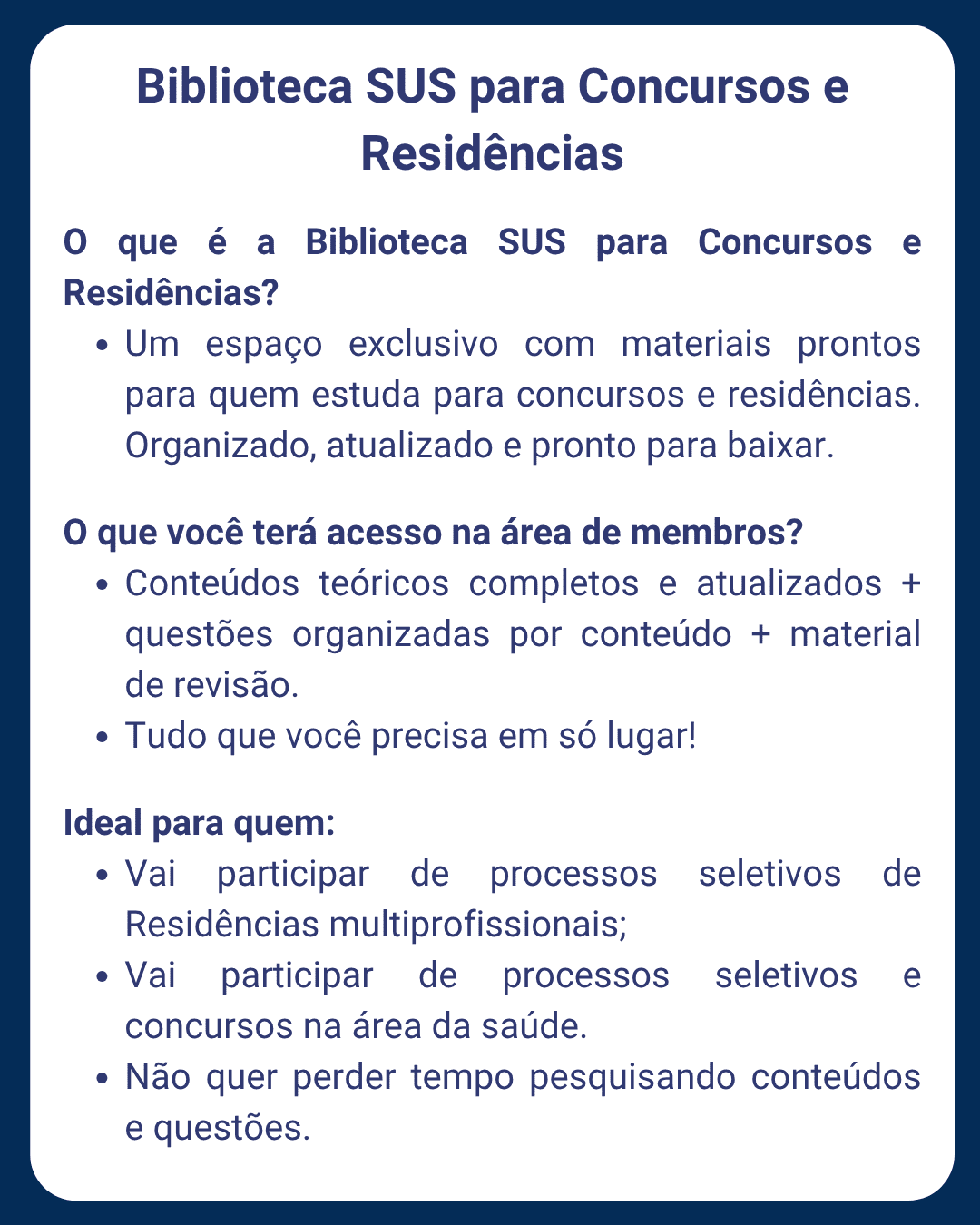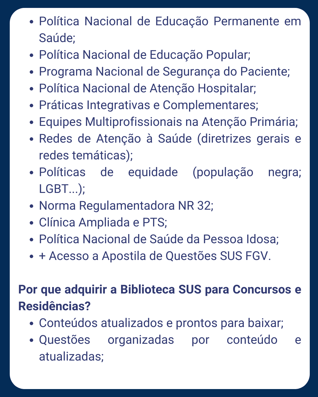 • Estudar a legislação do SUS é fundamental para quem deseja ser aprovado em concursos e residências na área da saúde. Não perca mais tempo e comece a estudar!